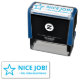Ce design inspirant de timbres en caoutchouc comprend le message de rétroaction encourageant "NICE JOB!" et un nom d'éducateur personnalisé. Il dispose également d'une icône décorative en forme d'étoile. Il pourrait être utilisé par un enseignant, un éducateur, un instructeur ou un tuteur pour évaluer le travail d'un étudiant, afin de reconnaître qu'un étudiant a fait un travail exceptionnel.