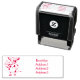 Problème de casse au transport, immédiatement re-fabriqué et livré en un temps record ! Principe technique du tampon standard efficace. Grace aux motifs "logo"proposés (d'un graphisme relativement simple mais efficace) et des choix perso' des polices et d'agencement dans la composition du tampon, la création est presque infini, du plus classique au plus insolite... Impossible donc de ne pas avoir "son" tampon bien personnel ! Impression parfaite sans "tache parasite". Très bonne finesse de détails...