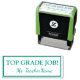 Ce design de timbres en caoutchouc encourageant comporte le message de rétroaction positive "TOP GRADE JOB!" et un nom d'enseignant personnalisé. Il pourrait être utilisé par un enseignant, un éducateur, un instructeur ou un tuteur pour marquer les affectations, pour indiquer que l'étudiant a bien fait.