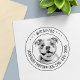 Photo d'animal de compagnie personnalisable et timbre texte. Veuillez noter que vous devrez peut-être ajuster les informations en ajoutant ou en supprimant certains caractères pour aligner le texte correctement.