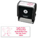 Problème de casse au transport, immédiatement re-fabriqué et livré en un temps record ! Principe technique du tampon standard efficace. Grace aux motifs "logo"proposés (d'un graphisme relativement simple mais efficace) et des choix perso' des polices et d'agencement dans la composition du tampon, la création est presque infini, du plus classique au plus insolite... Impossible donc de ne pas avoir "son" tampon bien personnel ! Impression parfaite sans "tache parasite". Très bonne finesse de détails...