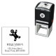 Problème de casse au transport, immédiatement re-fabriqué et livré en un temps record ! Principe technique du tampon standard efficace. Grace aux motifs "logo"proposés (d'un graphisme relativement simple mais efficace) et des choix perso' des polices et d'agencement dans la composition du tampon, la création est presque infini, du plus classique au plus insolite... Impossible donc de ne pas avoir "son" tampon bien personnel ! Impression parfaite sans "tache parasite". Très bonne finesse de détails...