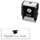 Ce timbre auto-encastré présente un graphique d'un mortier (casquette de graduation) et un texte de script personnalisé pour le nom du diplômé.