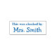 "Ceci a été vérifié par" Timbre en caoutchouc personnalisé. Idéal pour les enseignants qui vérifient les cahiers d'agenda, les devoirs et autres documents importants. Idéal aussi pour tous ceux qui ont besoin de vérifier quelque chose et de s’assurer qu’ils n’oublient pas qu’il a déjà été vérifié. Les parents peuvent également examiner le travail et le timbre de l’enfant avant de le renvoyer à l’école.