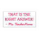 Ce design inspirant de timbres en caoutchouc comprend le message de rétroaction motivationnelle "C'EST LA BONNE RÉPONSE !" et le nom d'un enseignant ou d'un éducateur customisé. Il pourrait être utilisé par un enseignant, un éducateur ou un tuteur de l'école pour marquer les affectations, pour indiquer que l'élève a bien fait.