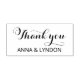Timbre auto-encastré typographie tendance. Moderne et élégant, ce design personnalisé présente le texte "Merci" dans l'élégante écriture de script de calligraphie et un champ de texte modifiable pour les noms dans une élégante police sans serif. Personnalisez facilement cette conception pour correspondre à votre style en cliquant sur "Personnaliser" pour aller à l'outil de conception et ajouter votre propre texte ou détails personnalisés.