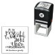 Problème de casse au transport, immédiatement re-fabriqué et livré en un temps record ! Principe technique du tampon standard efficace. Grace aux motifs "logo"proposés (d'un graphisme relativement simple mais efficace) et des choix perso' des polices et d'agencement dans la composition du tampon, la création est presque infini, du plus classique au plus insolite... Impossible donc de ne pas avoir "son" tampon bien personnel ! Impression parfaite sans "tache parasite". Très bonne finesse de détails...