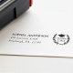 Ajoutez une touche de classe à votre correspondance avec ce timbre d'adresse de retour de couronnes de laurier auto-encre personnalisé. Parfait pour les diplômés, ce timbre personnalisé présente un design élégant de couronnes de laurier, ce qui en fait l'idéal pour les faveurs de la fête de remise de diplômes, des annonces émouvantes et des cartes de remerciements. Ce timbre d'adresse est facile à utiliser et feuille une empreinte propre et professionnelle à chaque fois. Faites une impression durable avec ce timbre élégant et fonctionnel et gardez votre correspondance à l'air pointu.