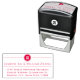 Problème de casse au transport, immédiatement re-fabriqué et livré en un temps record ! Principe technique du tampon standard efficace. Grace aux motifs "logo"proposés (d'un graphisme relativement simple mais efficace) et des choix perso' des polices et d'agencement dans la composition du tampon, la création est presque infini, du plus classique au plus insolite... Impossible donc de ne pas avoir "son" tampon bien personnel ! Impression parfaite sans "tache parasite". Très bonne finesse de détails...