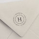 La conception élégante de l'adresse de retour comprend votre monogramme initial unique au centre avec une bordure en cercle pointillé. Votre nom de famille et votre adresse personnelle sont courbés autour de l'extérieur en lettres classiques.