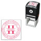 Problème de casse au transport, immédiatement re-fabriqué et livré en un temps record ! Principe technique du tampon standard efficace. Grace aux motifs "logo"proposés (d'un graphisme relativement simple mais efficace) et des choix perso' des polices et d'agencement dans la composition du tampon, la création est presque infini, du plus classique au plus insolite... Impossible donc de ne pas avoir "son" tampon bien personnel ! Impression parfaite sans "tache parasite". Très bonne finesse de détails...