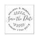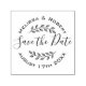 Créez une touche moderne parfaite avec ce timbre en caoutchouc personnalisé Save the Date avec lettrage circulaire et couronne feuille ombragée dessinée à la main. Veuillez noter que vous devrez peut-être ajuster les informations que vous entrez en ajoutant ou en supprimant des caractères ou des espaces, afin de rendre le texte correctement aligné.