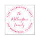 Personnalisez facilement ces personnalisations Créer votre propre nom de famille Script de retour Adresse timbres auto-encastrés en caoutchouc avec vos propres nom et adresse. Pour customiser ces timbres, cliquez sur "Personnaliser ce modèle" et changez le texte dans les cases fournies. Disponible en 9 couleurs et 6 tailles différentes. Veuillez voir votre conception sur le moniteur aussi près que possible de la taille réelle pour vous assurer que le texte s'imprime à la taille attendue. Ces timbres en caoutchouc auto-encastrés de retour estampillent jusqu'à 10000 impressions avec chaque cartouche, ont une touche douce pour une poignée sécurisée et des doigts sans encre et un processus de fabrication écologique. Pas de quantité minimale de commande.