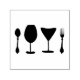 Salle à manger vintage avec photo de fourchette, cuillère, lunettes.
