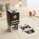Problème de casse au transport, immédiatement re-fabriqué et livré en un temps record ! Principe technique du tampon standard efficace. Grace aux motifs "logo"proposés (d'un graphisme relativement simple mais efficace) et des choix perso' des polices et d'agencement dans la composition du tampon, la création est presque infini, du plus classique au plus insolite... Impossible donc de ne pas avoir "son" tampon bien personnel ! Impression parfaite sans "tache parasite". Très bonne finesse de détails...
