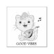 Tampon Auto-encreur Cute musicale Tabby Chat avec Mandoline