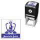 La conception du produit présente un blason avec un pingouin debout avec une chambre à air et un ballon de plage. Cette illustration d'animal assez sauvage avec un texte personnalisé fait un tampon en caoutchouc auto-encreur mignon et unique pour les enfants.