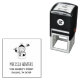 Problème de casse au transport, immédiatement re-fabriqué et livré en un temps record ! Principe technique du tampon standard efficace. Grace aux motifs "logo"proposés (d'un graphisme relativement simple mais efficace) et des choix perso' des polices et d'agencement dans la composition du tampon, la création est presque infini, du plus classique au plus insolite... Impossible donc de ne pas avoir "son" tampon bien personnel ! Impression parfaite sans "tache parasite". Très bonne finesse de détails...