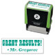 Cette conception motivante de timbres en caoutchouc comprend le message positif "GRANDS RÉSULTATS !" et un nom d'éducateur personnalisé. Il pourrait être utilisé par un enseignant, un éducateur ou un tuteur pour marquer les affectations, pour reconnaître que l'étudiant a bien fait.