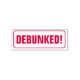 Cette estampille en caoutchouc présente le mot "DEBUNKED!" dans un rectangle aux angles arrondis.
