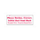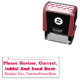 Cette conception respectable d'estampille en caoutchouc comprend le message "Veuillez réviser, corriger, initial et renvoyer", ainsi qu'une ligne pour une signature ou des initiales à écrire ci-dessus. Il comporte également un nom d'éducateur ou d'enseignant customisé. Il pourrait peut-être être utilisé par un enseignant, un tuteur ou un éducateur pour demander aux parents ou aux tuteurs d’un élève de revoir et de reconnaître la note reçue par un étudiant à un examen, à un article, à un essai, à un questionnaire ou à une autre affectation scolaire.