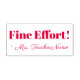 Cette conception motivante de timbres en caoutchouc comprend le message de retour inspirant "Effort fin!" et un nom d'enseignant personnalisé. Il pourrait être utilisé par un enseignant, un éducateur, un instructeur ou un tuteur pour marquer les affectations, pour indiquer qu'un étudiant a bien fait.