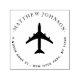 Ce Elegant Airplane Round Custom Name Adresse Timbre est parfait pour tout voyageur fréquent ou un pilote! Il correspond à votre prénom et nom de famille, ou votre nom de famille et une adresse complète. Le design comprend une silhouette d'avion et du texte personnalisé dans une élégante typographie coque inférieure et supérieure.