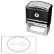 Problème de casse au transport, immédiatement re-fabriqué et livré en un temps record ! Principe technique du tampon standard efficace. Grace aux motifs "logo"proposés (d'un graphisme relativement simple mais efficace) et des choix perso' des polices et d'agencement dans la composition du tampon, la création est presque infini, du plus classique au plus insolite... Impossible donc de ne pas avoir "son" tampon bien personnel ! Impression parfaite sans "tache parasite". Très bonne finesse de détails...