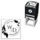 Tampon Auto-encreur Élégant monogramme à double anneau de feuillage