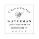 Élégant tampon d'adresse de retour comporte vos prénoms courbés gracieusement sur votre seul monogramme initial en script formel, avec votre nom de famille et les détails d'adresse de retour en dessous.