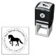 Tampon encreur personnalisé de ranch équestre élégant. Ce charmant tampon pré-encré est orné d'une silhouette de cheval au centre et d'un fin cadre rond incurvé. Le nom du ranch ou de la famille est imprimé en haut en caractères gras et courbes. L'adresse de l'expéditeur est placée dans la moitié inférieure, également en ligne courbe. Personnalisez-le en remplaçant le texte d'exemple par vos informations de messagerie ou tout autre texte personnalisé.