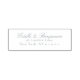 Un élégant timbre encreur à adresse de retour de mariage en écriture script qui ajoute une touche de finition raffinée à vos enveloppes, apportant une écriture gracieuse et une sophistication intemporelle à votre correspondance. Disponible en encre noire et blanche et dans une variété de couleurs supplémentaires pour correspondre à votre esthétique de mariage !