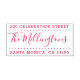 Personnalisez facilement ces Elegant Split Address Self-Inking Return Adresse Self-Inking Balises auto-encastrées avec vos propres nom et adresse. Pour customiser ces timbres, cliquez sur "Personnaliser ce modèle" et changez le texte dans les cases fournies. Disponible en 9 couleurs et 6 tailles différentes. Veuillez voir votre conception sur le moniteur aussi près que possible de la taille réelle pour vous assurer que le texte s'imprime à la taille attendue. Pour être utilisé comme timbre d'adresse de retour, la plupart des gens auront besoin d'une taille plus grande. Ces timbres en caoutchouc auto-encastrés de retour estampillent jusqu'à 10000 impressions avec chaque cartouche, ont une touche douce pour une poignée sécurisée et des doigts sans encre et un processus de fabrication écologique. Pas de quantité minimale de commande.