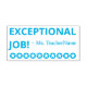Ce design amusant de timbres en caoutchouc comprend le message de motivation "TRAVAIL EXCEPTIONNEL !" et le nom d'un enseignant ou d'un éducateur sur mesure. Il est également décoré en étoile. Il pourrait être utilisé par un enseignant, un éducateur ou un tuteur pour marquer les affectations, pour indiquer que l'étudiant a fait un excellent travail.