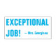 Ce design inspirant d'estampille en caoutchouc comprend le message de motivation "EXCEPTIONAL JOB!" et le nom d'un éducateur personnalisé. Il pourrait être utilisé par un enseignant, un éducateur ou un tuteur pour marquer les affectations, pour indiquer qu'un étudiant a bien fait.