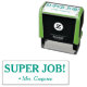 Cette conception amusante de timbres en caoutchouc comprend le message motivant "SUPER JOB!" et un nom de tuteur personnalisé. Il pourrait être utilisé par un enseignant, un éducateur ou un tuteur pour marquer les affectations, pour indiquer que l'étudiant a bien fait.