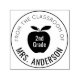 Ce timbre auto-encastré est conçu pour que n'importe quel enseignant puisse l'utiliser pour ses livres et fournitures de classe. Cette conception circulaire est accentuée par un graphique d'une pomme. Le texte personnalisé vous permet de personnaliser avec le nom et la note de l'enseignant.