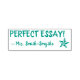 Ce design amusant de timbres en caoutchouc comprend le message de louange "PERFECT ESSAY!" et le nom d'un enseignant ou d'un éducateur personnalisé. Il dispose également d'une icône d'étoile décorative. Il pourrait être utilisé par un enseignant, un éducateur ou un tuteur pour marquer les affectations, pour reconnaître qu'un étudiant a bien fait.
