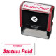 Ce cachet en caoutchouc comprend le message "Statut : Payé" et une ligne où une date de paiement peut être écrite. On pourrait peut-être l'utiliser pour indiquer qu'une facture ou une facture a été payée.
