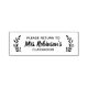 Timbre en caoutchouc personnalisé avec un étiquette de plaque d'inscription pour les enseignants et bordure de branche rustique. Le texte indique "Veuillez retourner à" personnalisé avec le nom de l'enseignant pour faciliter l'étiquetage de vos livres de classe ou d'autres fournitures. Utilisez les outils de conception pour mieux customiser votre propre conception de timbres unique.