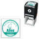 Problème de casse au transport, immédiatement re-fabriqué et livré en un temps record ! Principe technique du tampon standard efficace. Grace aux motifs "logo"proposés (d'un graphisme relativement simple mais efficace) et des choix perso' des polices et d'agencement dans la composition du tampon, la création est presque infini, du plus classique au plus insolite... Impossible donc de ne pas avoir "son" tampon bien personnel ! Impression parfaite sans "tache parasite". Très bonne finesse de détails...