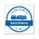 Timbre avec camion de pompiers et personnalisez le nom du jeune pompier.