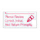 Cette conception respectable d'estampille en caoutchouc comporte le message "Veuillez réviser, corriger, initial et retourner rapidement.", ainsi qu'une ligne où une signature ou des initiales pourraient être écrites ci-dessus. Il pourrait peut-être être utilisé par un éducateur ou un professionnel de l'administration pour demander que quelqu'un examine et reconnaisse le contenu d'un document.
