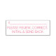Ce cachet en caoutchouc clair comporte le message "VEUILLEZ RÉVISER, CORRECTER, INITIAL & ENVOYER EN ARRIÈRE", ainsi qu'une ligne pour une signature ou des initiales à écrire ci-dessus. Il pourrait être utilisé par un enseignant ou un professionnel de l'administration pour demander que quelqu'un examine et reconnaisse le contenu d'un document.