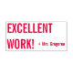 Ce design amusant de timbres en caoutchouc comporte le message encourageant "EXCELLENT TRAVAIL!" et un nom d'enseignant personnalisé. Il pourrait être utilisé par un enseignant, un éducateur ou un tuteur pour marquer les affectations, pour reconnaître que l'étudiant a fait un excellent travail.
