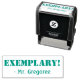 Ce design motivant de timbres en caoutchouc comprend le message inspirant "EXEMPLAIRE !" et le nom d'un éducateur personnalisé. Il pourrait être utilisé par un enseignant, un éducateur ou un tuteur pour marquer les affectations, pour reconnaître qu'un étudiant a bien fait.
