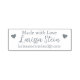 Un joli produit sur mesure avec les mots "Fabriqué avec amour", pour personnaliser vos produits faits à la main avec amour... votre propre nom ou marque dans un style de police de script élégant, et une ligne pour ajouter e-mail ou toute autre information supplémentaire sur votre entreprise... deux petits coeurs d'amour sur les côtés.