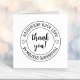Timbre rond simple avec message Merci entouré d'un texte personnalisable. Veuillez noter que vous devrez peut-être ajuster les informations que vous entrez en ajoutant ou en supprimant des caractères pour aligner le texte correctement.
