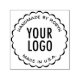 Personnalisez ce tampon encreur "fait main par" avec votre nom, votre logo d'entreprise, le pays d'origine de votre produit, ou d'autres textes personnalisés (vous pouvez personnaliser le slogan avec le texte de votre choix comme "fait avec amour", "fabriqué à la main par..." etc.). Ce tampon présente une bordure ronde festonnée. Disponible dans d'autres couleurs d'encre en taille carrée de 1,5 pouces. Aucune quantité minimum de commande et aucun frais de configuration.