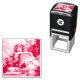 Problème de casse au transport, immédiatement re-fabriqué et livré en un temps record ! Principe technique du tampon standard efficace. Grace aux motifs "logo"proposés (d'un graphisme relativement simple mais efficace) et des choix perso' des polices et d'agencement dans la composition du tampon, la création est presque infini, du plus classique au plus insolite... Impossible donc de ne pas avoir "son" tampon bien personnel ! Impression parfaite sans "tache parasite". Très bonne finesse de détails...